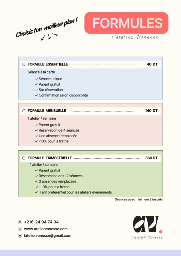 Choisissez votre atelier puis réservez via le formulaire en bas de page.